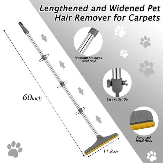 Custom 60 Inch Long Handle Cat Dog Hair Remover Advanced Pet Hair Removal Broom Lint Remover Scraper for Carpets, Rugs